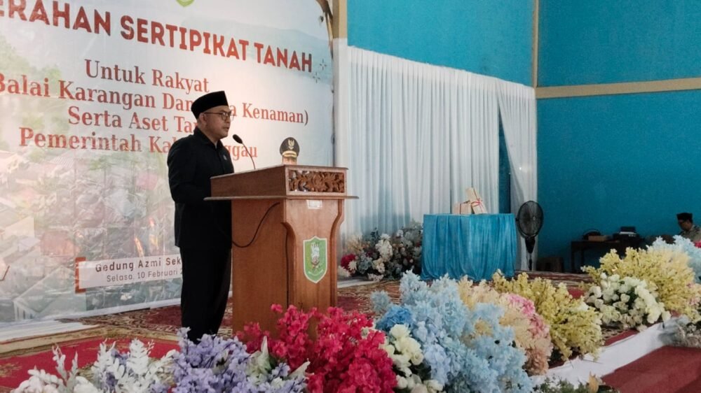 Kegiatan penyerahan sertipikat tersebut digelar di Gedung Azmi Sekayam, Selasa 10 Februari 2026, sebagai bagian dari upaya pemerintah memberikan kepastian hukum atas kepemilikan tanah masyarakat serta penertiban administrasi aset daerah.